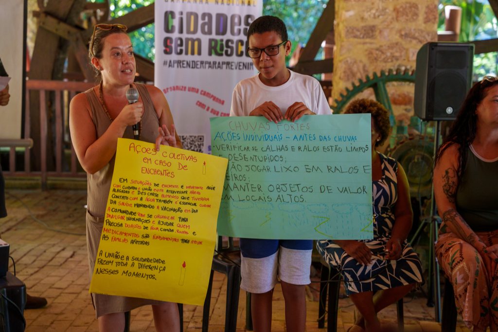 “Este  é o momento de visibilizar a força que vem dos territórios. Quando uma comunidade se organiza para entender seus riscos e agir de forma coletiva, ela deixa de ser apenas alvo dos impactos climáticos e passa a ser protagonista da sua própria proteção. A justiça climática começa pelo reconhecimento de que cada periferia e cada escola tem um papel vital na construção de cidades mais seguras”, afirma Samia Sulaiman, coordenadora de Articulação e Parcerias da Secretaria Nacional de Periferias, do Ministério das Cidades.