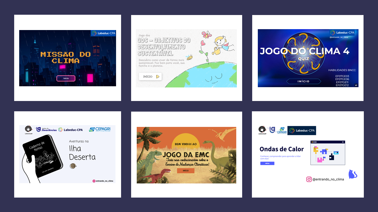 Jogos desenvolvidos pelo LabEduc (Laboratório de Ensino em Mudanças Climáticas) do Cepagri (Centro de Pesquisas Meteorológicas e Climáticas Aplicadas à Agricultura), para envolver estudantes com as temáticas climáticas.
